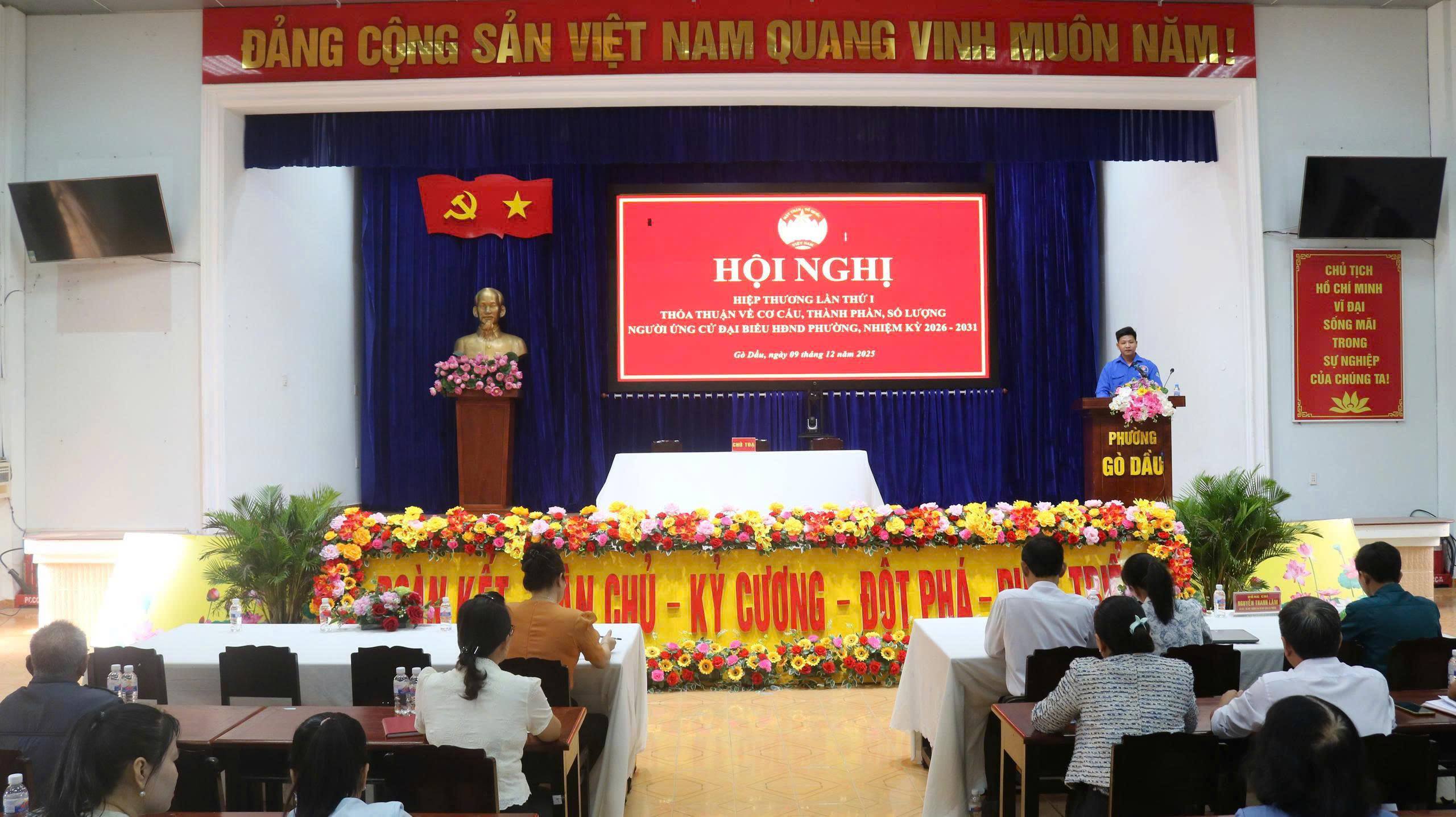 Sáng 09/12, Ban Thường trực UBMTTQ Việt Nam phường Gò Dầu, tỉnh Tây Ninh, tổ chức Hội nghị hiệp thương lần thứ nhất để thỏa thuận về cơ cấu, thành phần, số lượng người ứng cử đại biểu HĐND phường,...